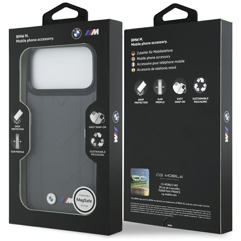 Prošívaný kryt BMW M s logem MagSafe pro iPhone 17 Pro Max (antracitový)