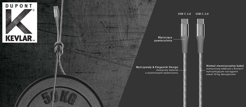 • Kabel je vyroben z materiálu Kevlar® od společnosti DuPont™, díky čemuž je mimořádně odolný vůči nástrahám každodenního používání. Speciální vlákna, která tvoří kabelovou v