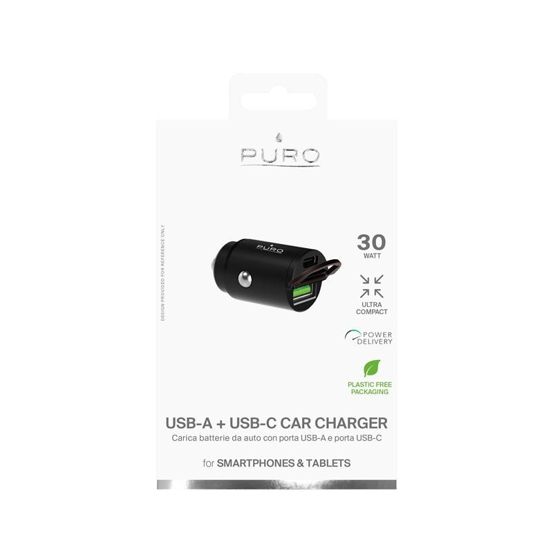 PURO Mini Car Fast Charger - Nabíječka do auta 1 x USB-A + 1 x USB-C Power Delivery 30 W (černá)