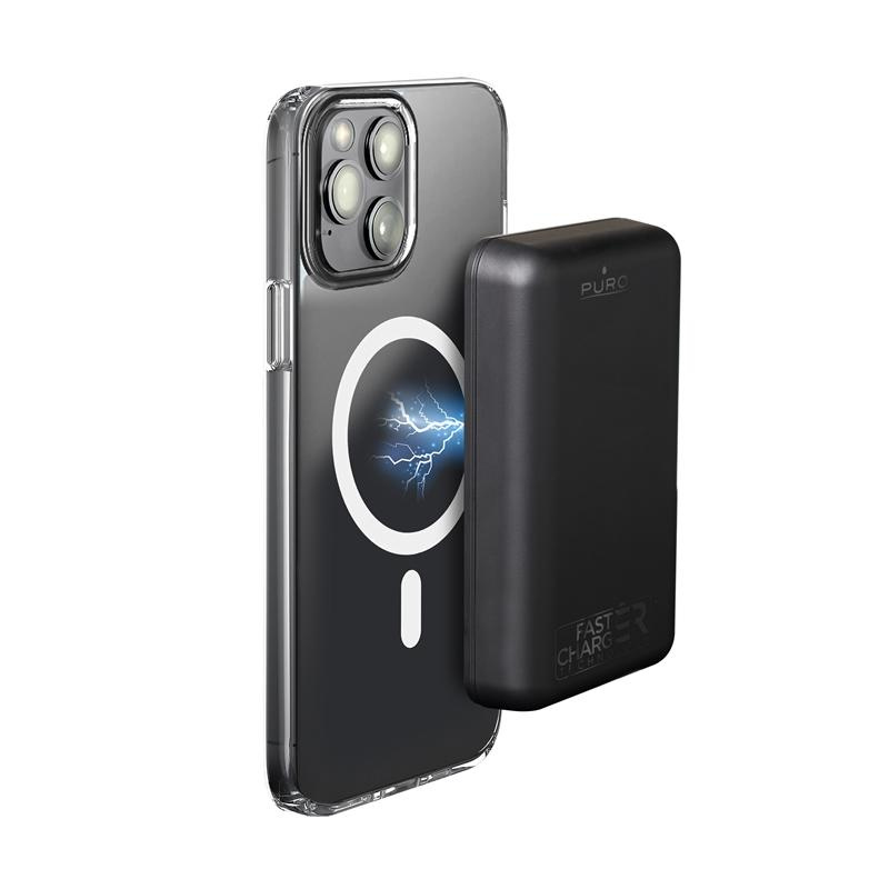 Puro PowerMag je vysokorychlostní powerbanka vybavená přenosnou magnetickou nabíječkou. Umožňuje bezdrátové nabíjení zařízení s podporou MagSafe, čímž se eliminuje zamotávání kabelů. Díky silným magnetům telefon dokonale přilne k powerbance a umožňuje jeho používání během nabíjení.