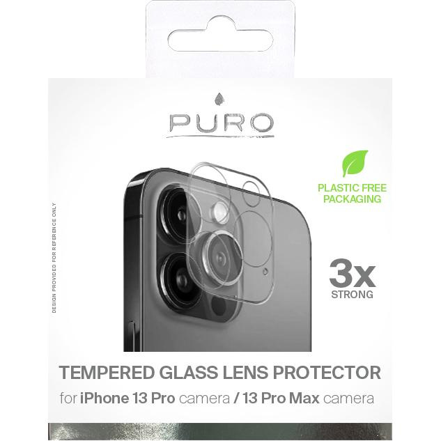 - Puro Tempered Glass Camera Lens Protector je ochranné sklo určené k ochraně fotoaparátu telefonů Apple iPhone 13 Pro a Apple iPhone 13 Pro Max.