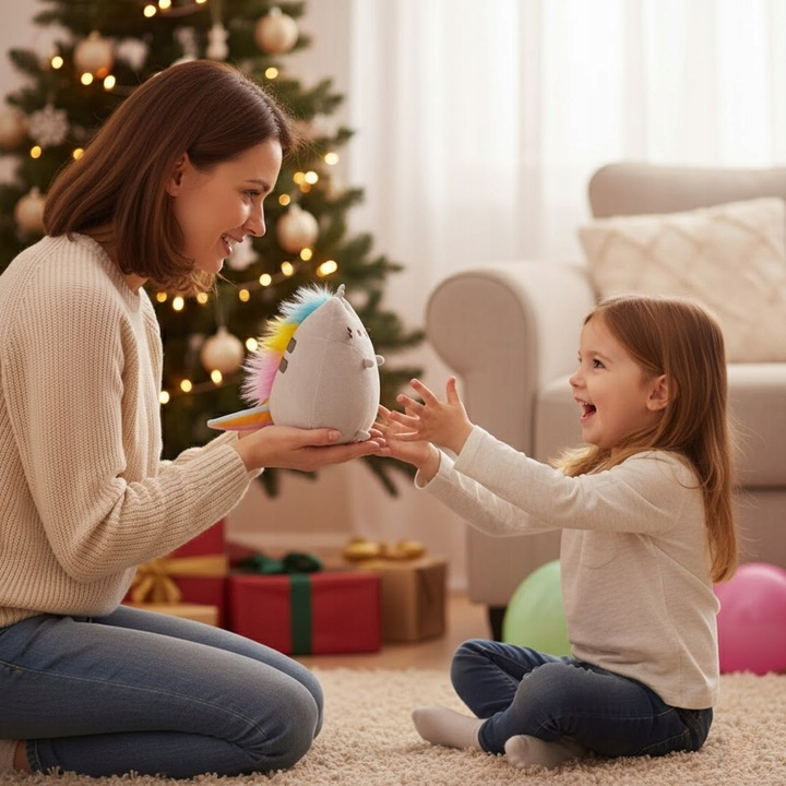Pusheenicorn má hebkou srst v příjemném pastelovém odstínu, která je hebká na dotek a ideální pro mazlení. Její barevná hříva, stříbrný roh a dlouhý ocas jí dodávají jedinečné kouzlo a dělají z ní vysněného společníka pro děti i dospělé.