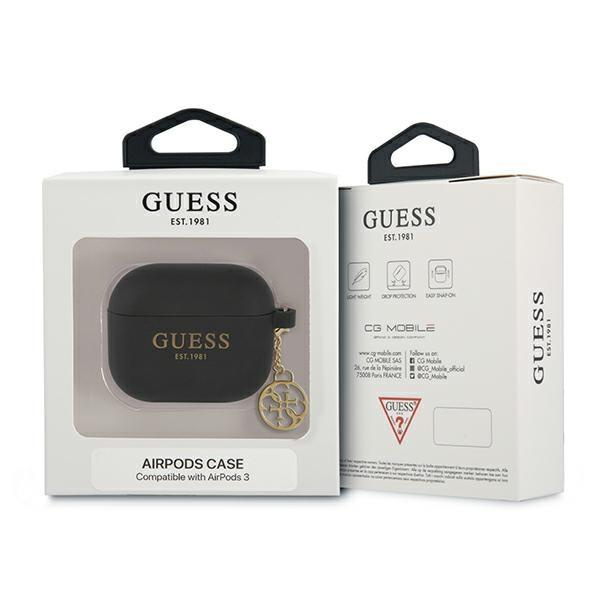 Silikonové pouzdro Guess 4G Charms - pouzdro pro AirPods 3 (černé)
