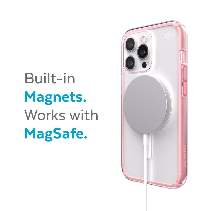 - Speck Presidio Perfect-Clear s Impact Geometry® + MagSafe je průhledné pouzdro se zabudovaným magnetem, kompatibilní s příslušenstvím Apple MagSafe®.