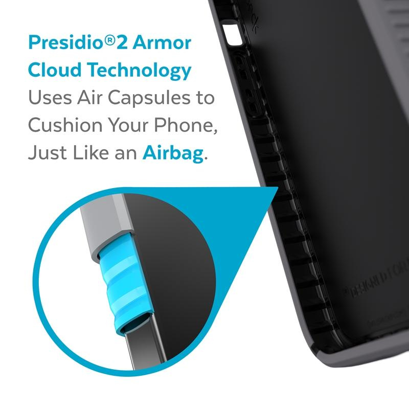 Pouzdro Presidio2 Grip je také vyrobeno s technologií Armor Cloud™, díky které je pouzdro Speck odolné proti pádu z výšky až 4 metrů. Systém mikrokapslí uvnitř stěn pouzdra funguje na podobném principu jako airbagy používané v automobilech. Při pádu na tvrdý povrch tlumí kapsle sílu nárazu pomocí vzduchu, který je v nich stlačen.