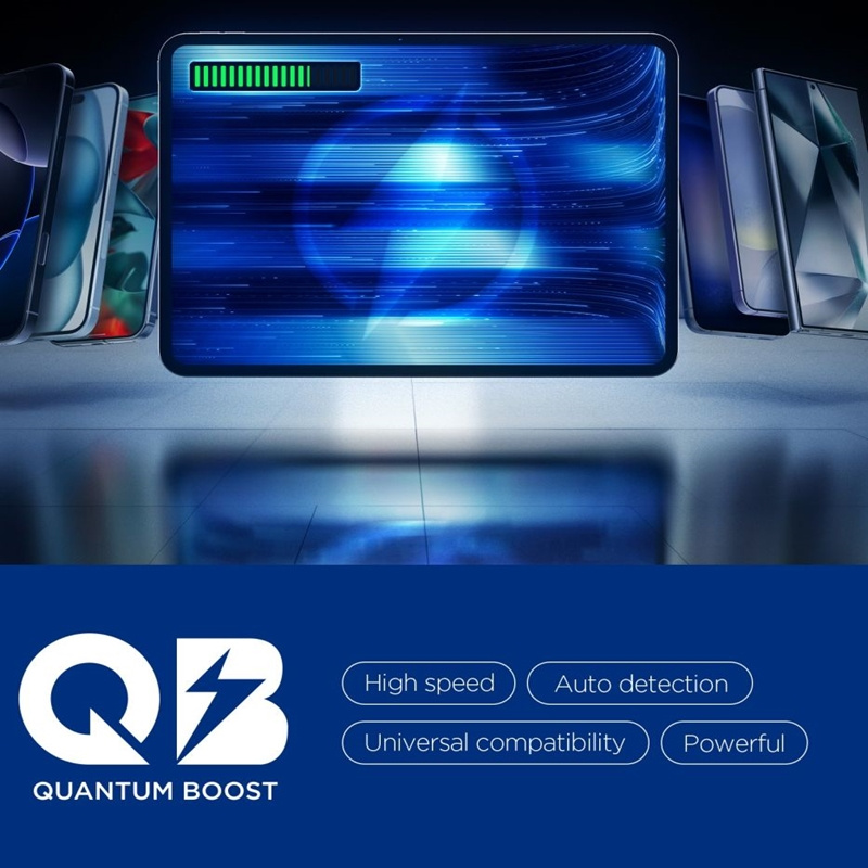 Technologie Quantum Boost automaticky upravuje parametry nabíjení podle připojeného zařízení, čímž zvyšuje efektivitu a zkracuje dobu potřebnou k nabíjení. Bezpečnost je zajištěna sadou pokročilých ochranných funkcí: Prevence přebíjení, Vyrovnávání napětí a Regulace napětí, které chrání připojená zařízení před přebíjením, nesprávným napětím a nadměrným proudem.