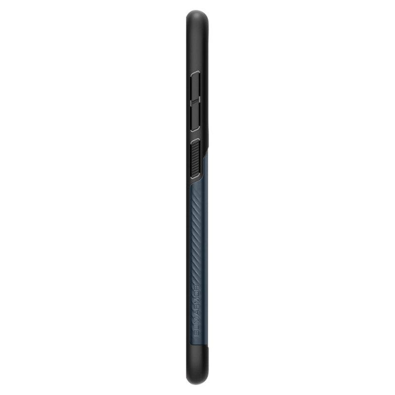 Pouzdro Spigen Slim Armor se vyznačuje dvouvrstvou konstrukcí, která se skládá z překryvné vrstvy z měkkého a odolného TPU, na kterou je nanesen polykarbonátový rám. Dvojitá konstrukce zajišťuje plnou ochranu zařízení, zatímco vestavěná noha poskytuje další funkce.
