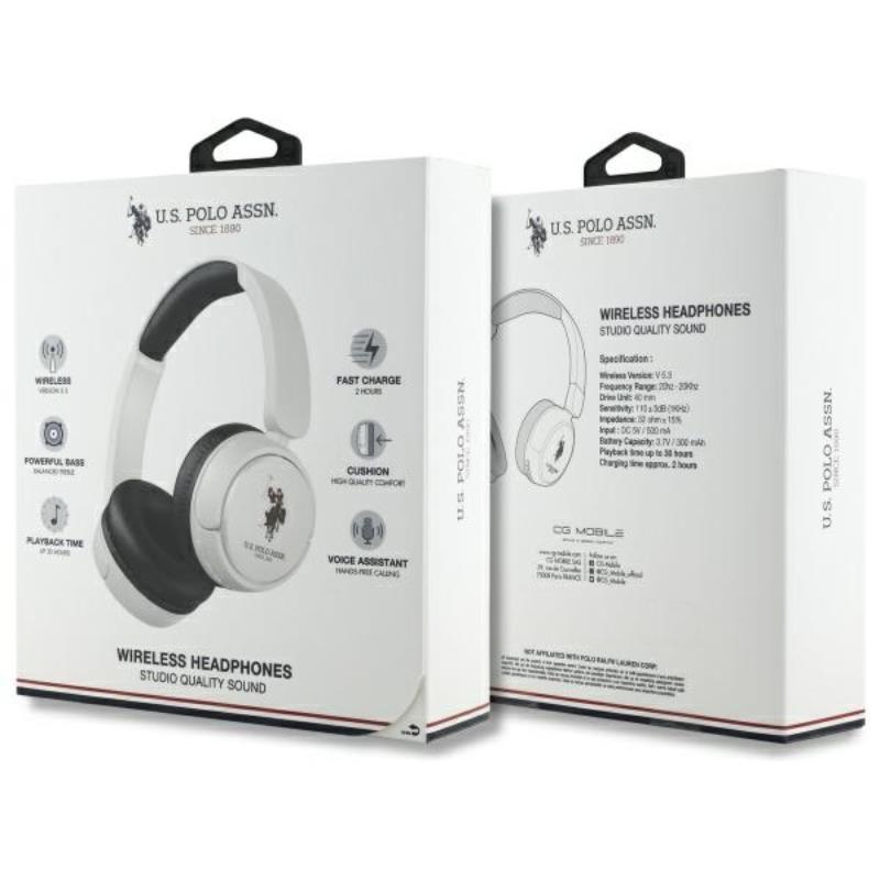 US Polo Assn DH Color Logo - Bezdrátová sluchátka přes uši Bluetooth V5.3 (bílá)