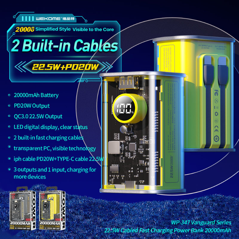 - Powerbanka WEKOME WP-347 řady Vanguard má mimořádně stylovou a robustní konstrukci, která umožňuje pohodlné a bezpečné používání za všech podmínek.