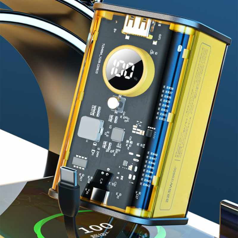 WEKOME WP-347 Vanguard Series - Power banka 20000 mAh Super rychlé nabíjení s vestavěným USB-C PD 20W a Lightning + USB-A QC3.0 22,5W kabelem (žlutá)