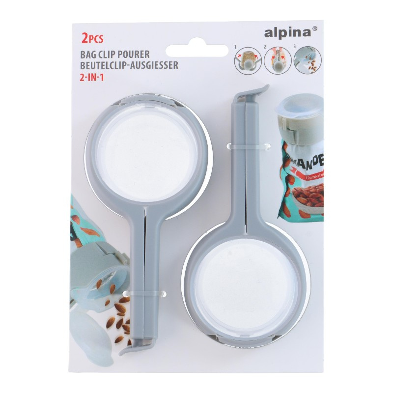 Alpina - 2-in-1-Clip zum Verschließen von Verpackungen mit Spender (2 Stück)