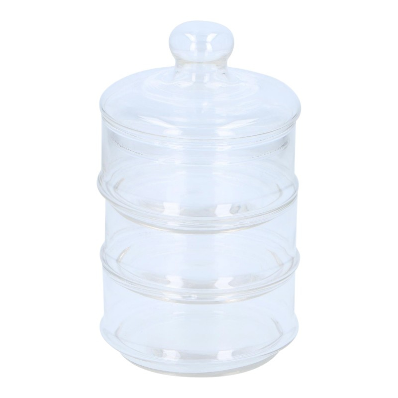 Diese elegante und praktische dreistöckige Bonboniere aus Glas von Alpina ist die perfekte Lösung zur Aufbewahrung von Süßigkeiten, Snacks, Keksen und Nüssen. Dank seines modularen Designs lässt es sich leicht in drei separate Schüsseln zerlegen oder zu einem kompakten Behälter zusammenfügen und ist somit ideal für den Tisch und den Küchenschrank.
