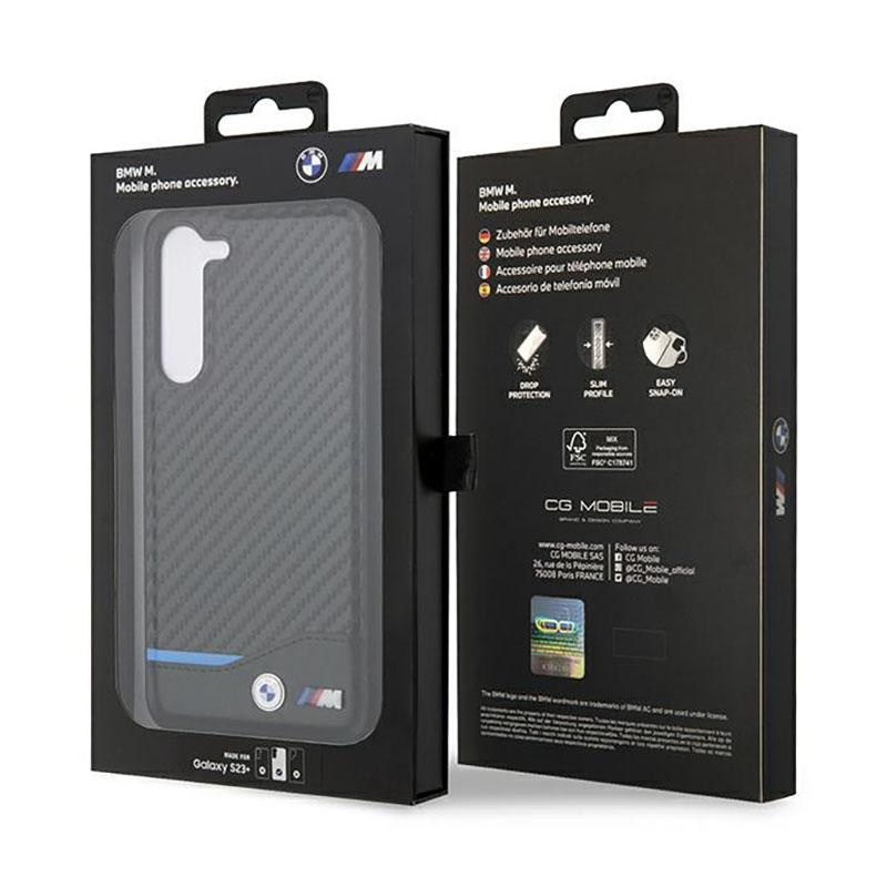 BMW Leder Carbon Blue Line - Hülle für Samsung Galaxy S23+ (Schwarz)