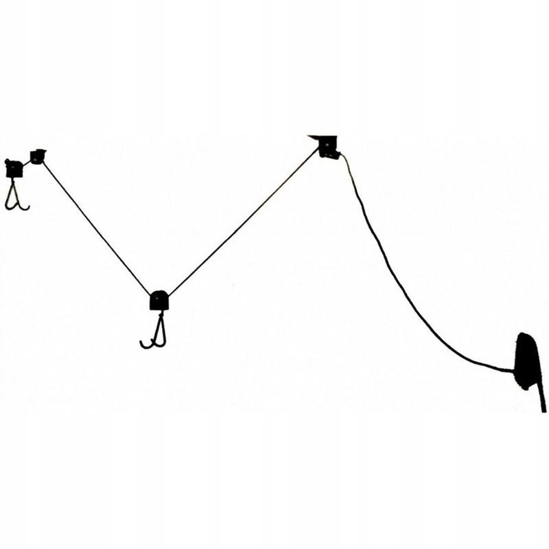 Ein Seil wird mitgeliefert, um die Lagerung unter der Decke mit einer maximalen Höhe von 4 Metern zu ermöglichen. Der Halter ist für die Aufnahme von Fahrrädern mit einem Höchstgewicht von 20 kg ausgelegt.