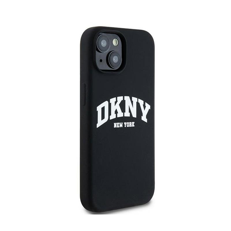 DKNY Liquid Silicone White Printed Logo MagSafe - Hülle für iPhone 14 / 15 / 13 (schwarz)