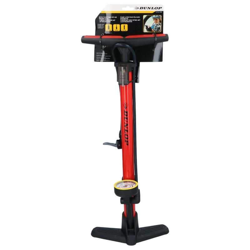Dunlop - Standpumpe für Fahrräder, Bälle, Matratzen mit Manometer (Rot)