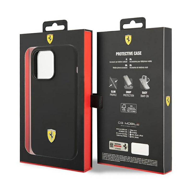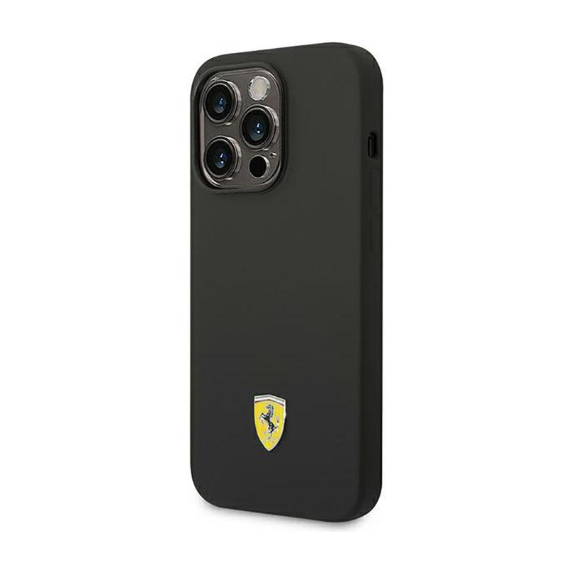 Ferrari Liquid Silikonhülle Metall Logo MagSafe - iPhone 14 Pro Max Hülle (Schwarz)