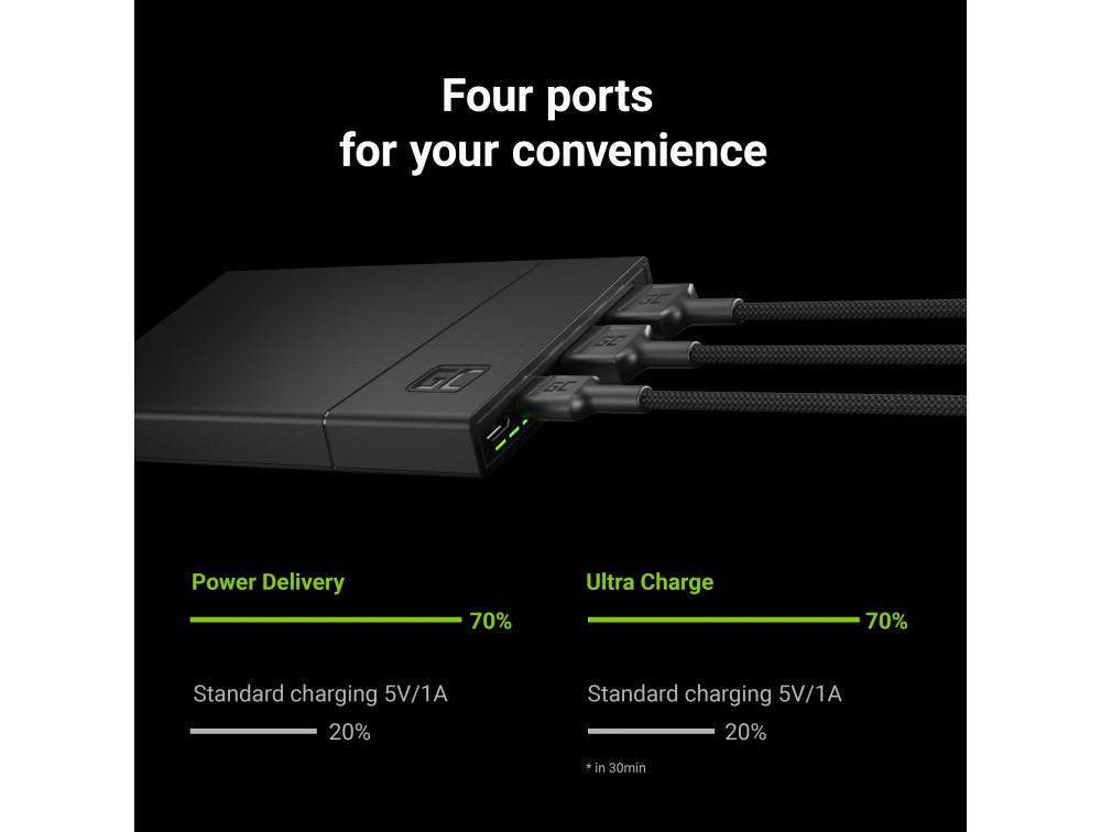 Green Cell PowerPlay10S - Powerbank 10000 mAh mit Schnellladung 2x USB Ultra Charge und 2x USB-C PD 18W