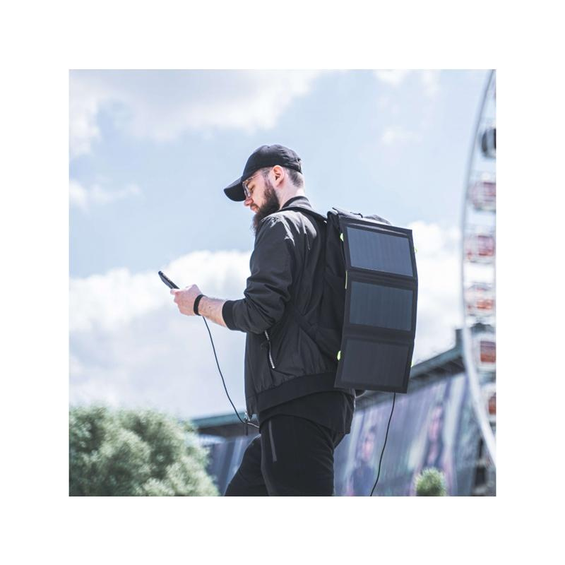 Das leichte, kompakte und faltbare Design des Solarladegeräts ermöglicht einen einfachen Transport des Geräts. Zusammengeklappt nimmt das Ladegerät nicht viel Platz ein - seine Abmessungen entsprechen in etwa der Größe eines A4-Blattes. Mit den mitgelieferten Karabinern lässt sich der SolarCharge an jedem Rucksack befestigen, so dass er auch unterwegs bequem und effizient genutzt werden kann. Dies ist ein absolutes Muss, wenn wir wandern, campen oder in Situationen, in denen wir unsere Geräte in einem Notfall aufladen müssen.