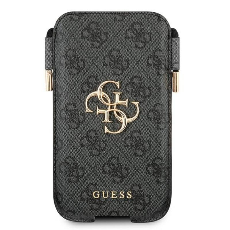 - Guess 4G Big Metal Logo Pouch Handytasche mit Kreuzschlitz. Das Produkt zeichnet sich durch eines der bekanntesten Motive von Guess aus - das Etui ist mit 4G-Emblemen bedeckt, die sich auf einer sehr griffigen Saffiano-Textur befinden. Groß, böse