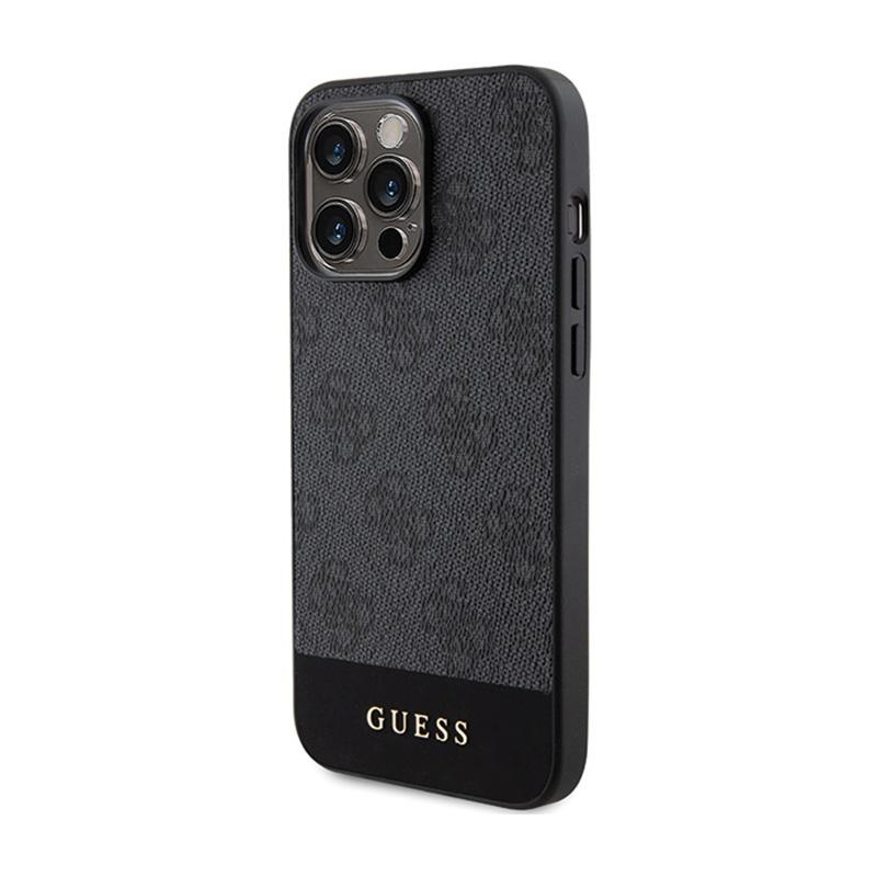 Guess 4G Bottom Stripe Metal Logo Collection - iPhone 15 Pro Max Tasche (grau)