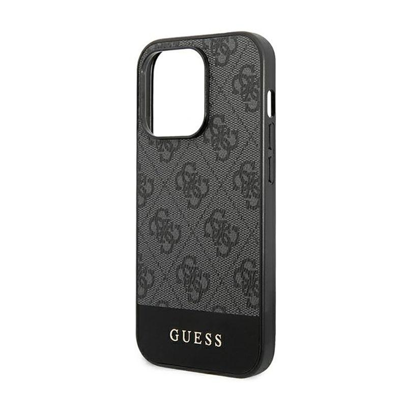 Guess 4G Bottom Stripe Metall Logo Kollektion - iPhone 14 Pro Tasche (grau)