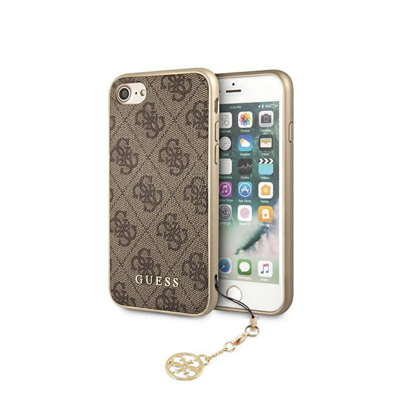 Guess 4G Charms Kollektion - iPhone SE 2020 / 8 / 7 Tasche mit Anhänger (braun)