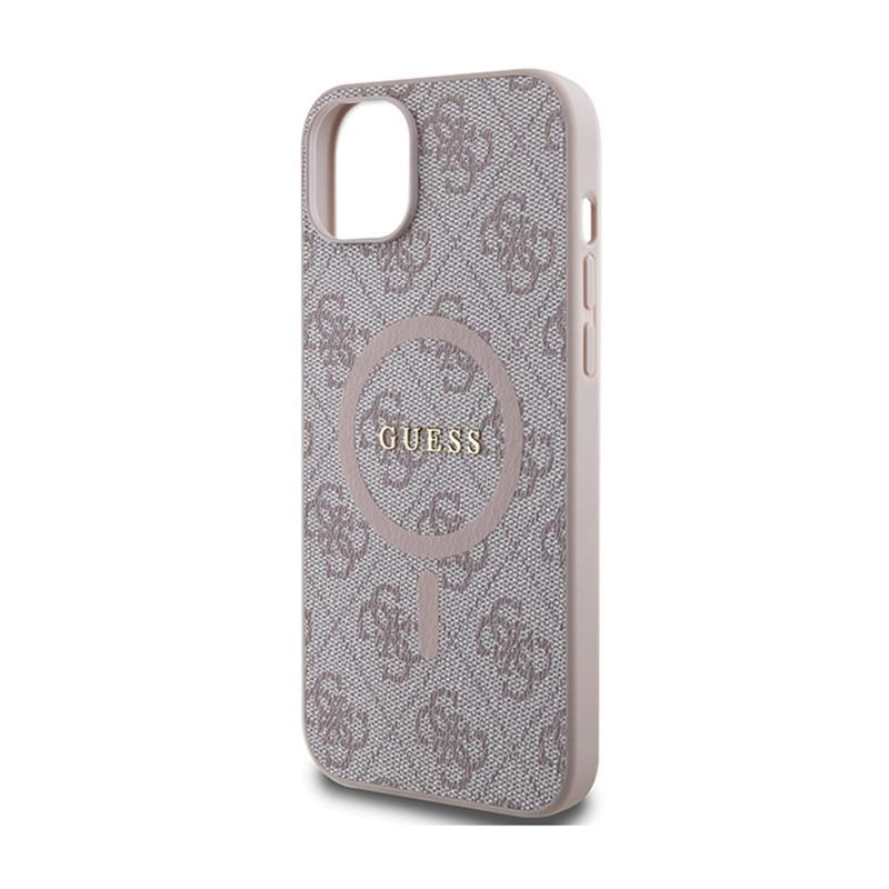 Guess 4G Collection Leather Metal Logo MagSafe - Tasche für iPhone 15 Plus / 14 Plus (pink)