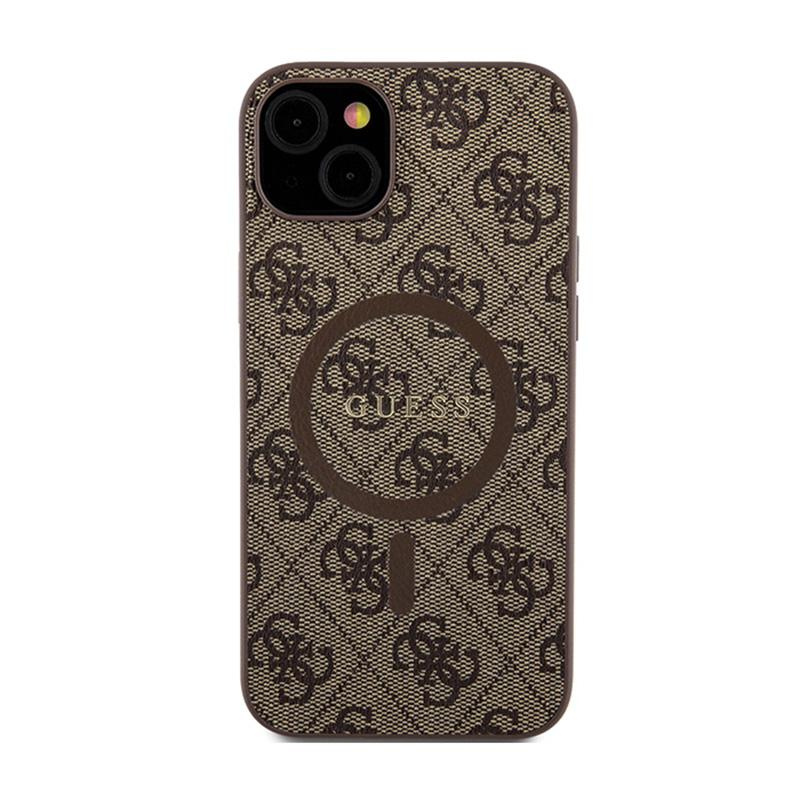 Guess 4G Collection Leder Metall Logo MagSafe - iPhone 15/14/13 Hülle (Braun)