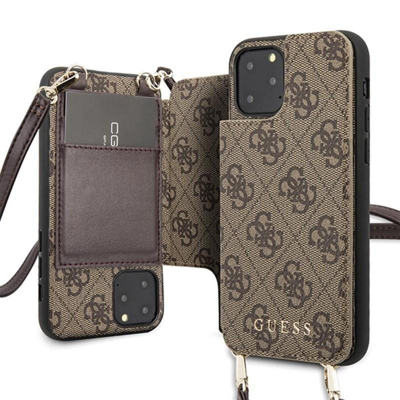 Guess 4G Crossbody - Tasche mit Kartenfächern und abnehmbarem Schlüsselband iPhone 11 Pro (Braun)