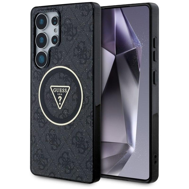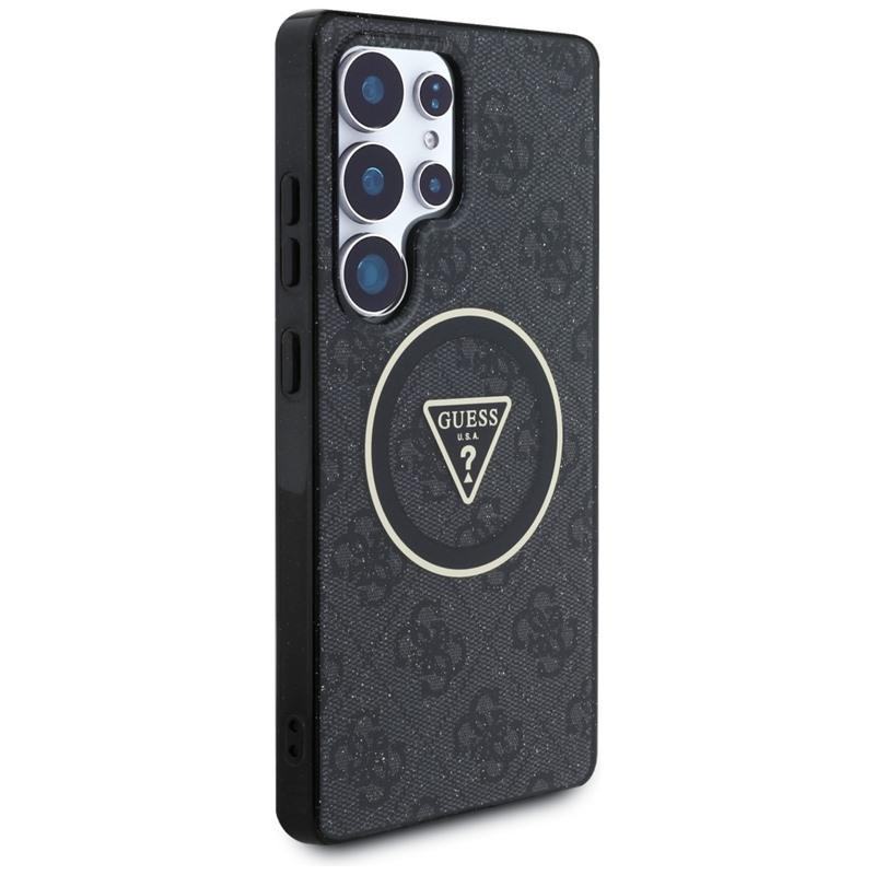 Guess 4G Glitter Triangle Buttons MagSafe - Hülle für Samsung Galaxy S25 Ultra (schwarz)