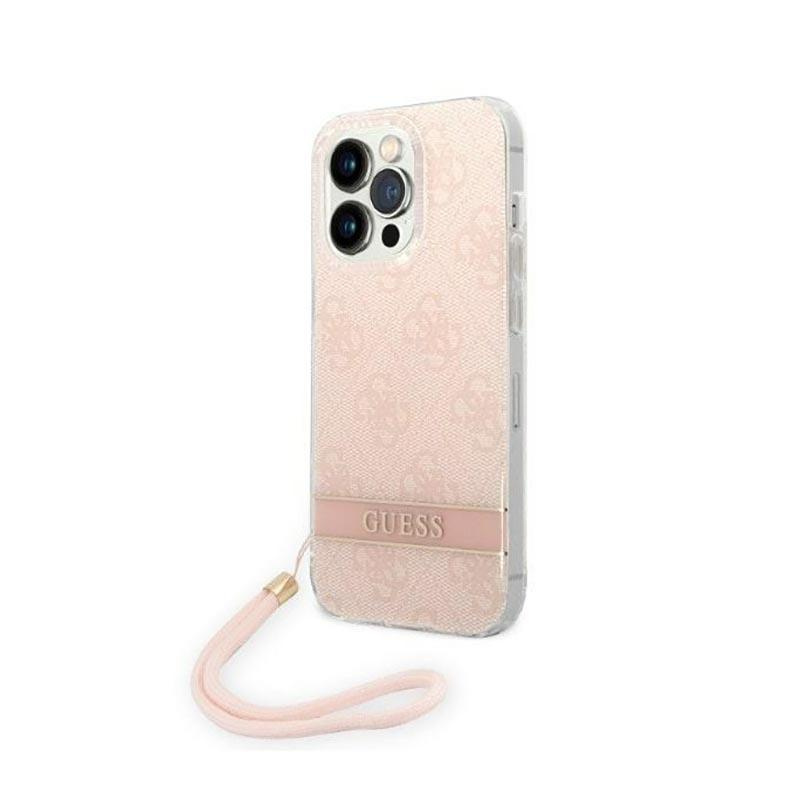 Guess 4G Print Cord - Tasche mit Umhängeband iPhone 14 Pro (rosa)