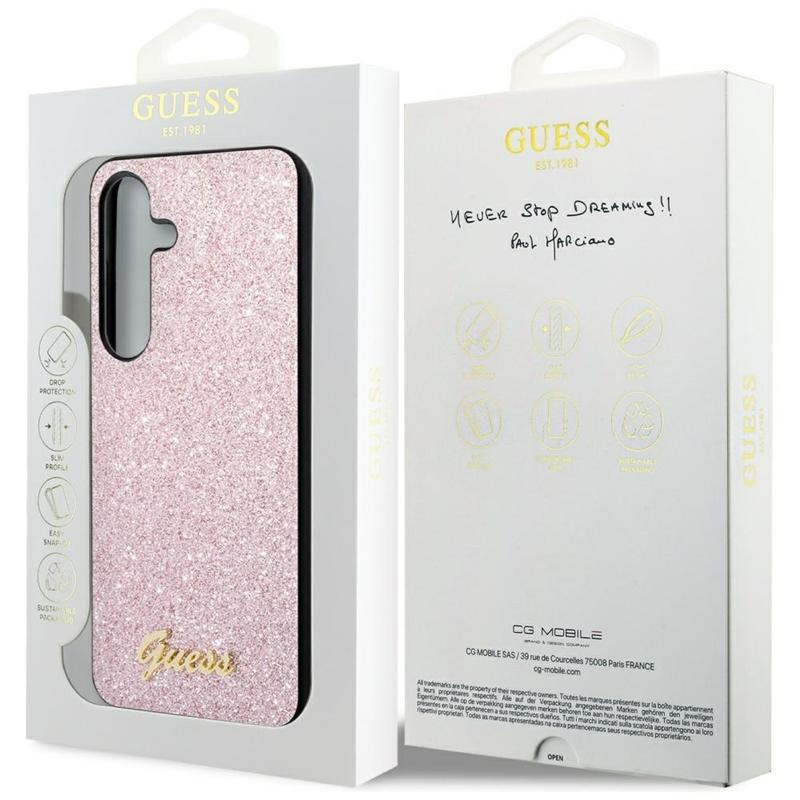 Guess Glitter Flakes Metal Logo Case - Tasche für Samsung Galaxy S24 (Pink)