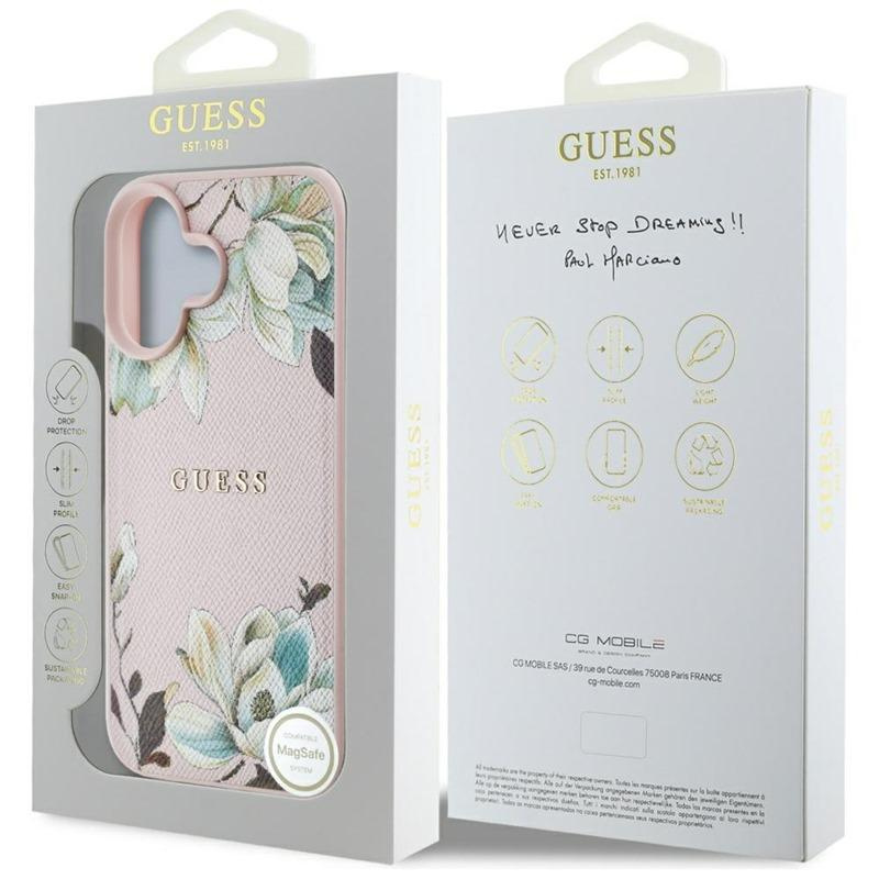 Guess Grained Printed Flower Pattern MagSafe - Hülle für iPhone 16 (rosa)