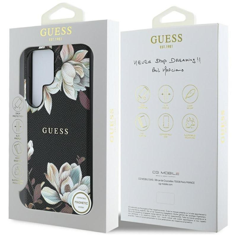 Guess Grained Printed Flower Pattern MagSafe - Hülle für Samsung Galaxy S25 Ultra (schwarz)