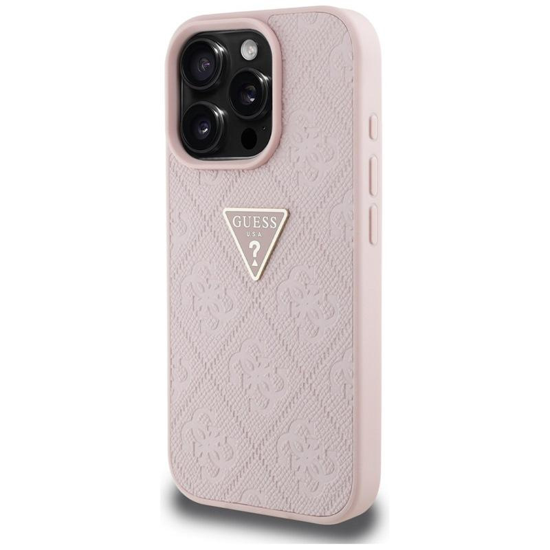 Guess Hot Stamp 4G Pattern Triangle Metal Logo - Hülle für iPhone 16 Pro (rosa)