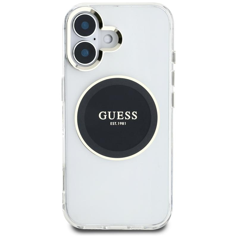 Guess IML Metal Colored Circle Classic Logo MagSafe - Hülle für iPhone 16 (schwarz)