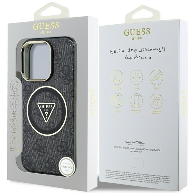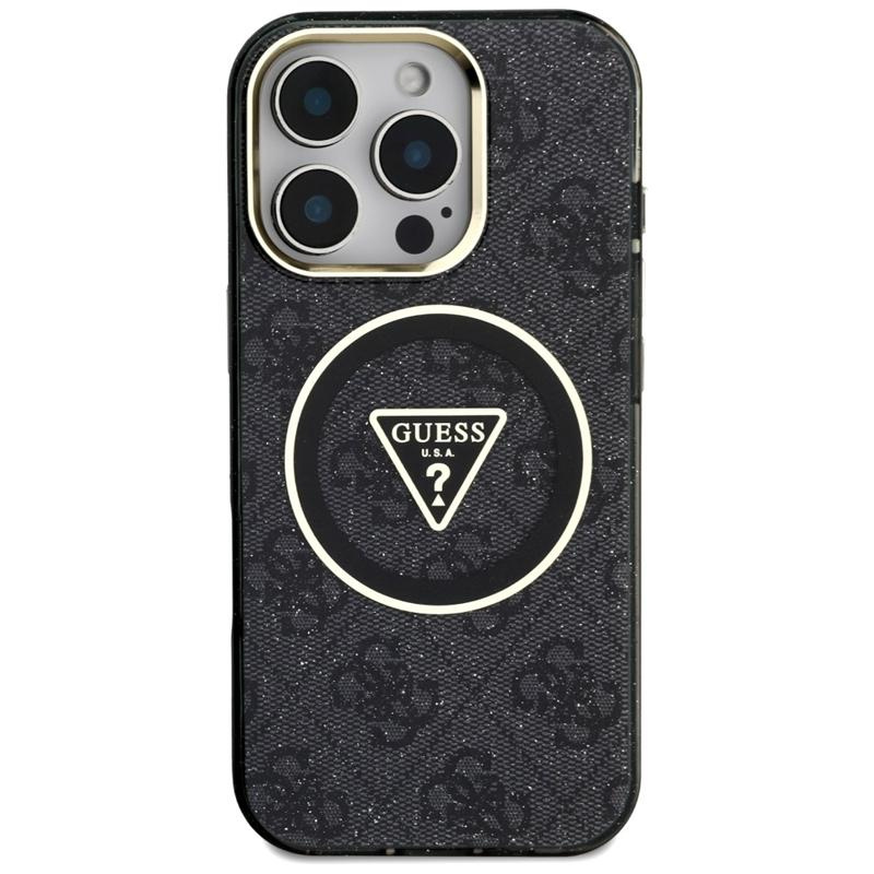 Guess IML Metal Glitter 4G Circle Triangle MagSafe - Hülle für iPhone 16 Pro (schwarz)
