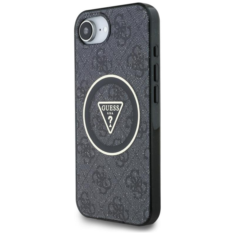 Guess IML Metal Glitter 4G Circle Triangle MagSafe - Hülle für iPhone 16e (schwarz)