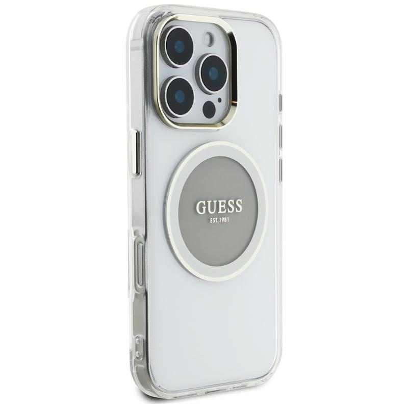 Guess IML Metallfarbener Kreis Klassisches Logo MagSafe - Gehäuse für iPhone 16 Pro (grau)