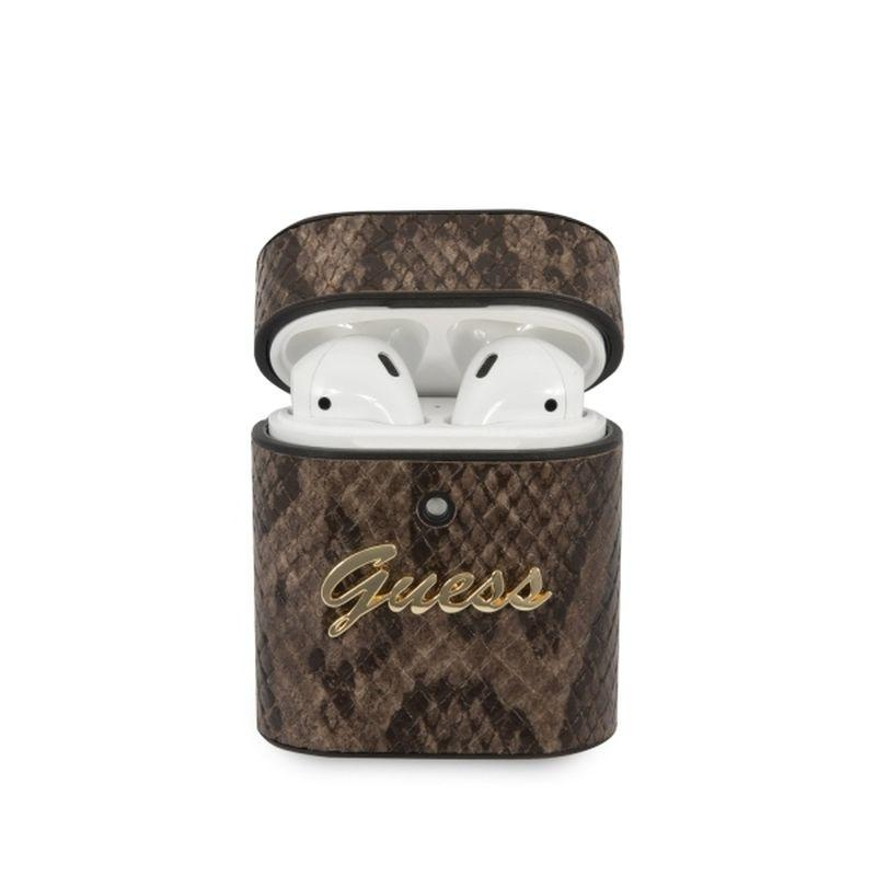 - Tasche für AirPods Kopfhörer der 1. und 2. Generation aus hochwertigem Öko-Leder, das Schlangenhaut imitiert. Schützt vor Beschädigungen und Kratzern. Eine perfekte Passform. Alle mit einem großen Guess-Logo in Goldtönen verziert.