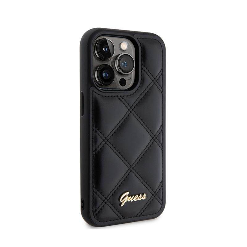 Guess Quilted Metal Logo - Hülle für iPhone 15 Pro (Schwarz)