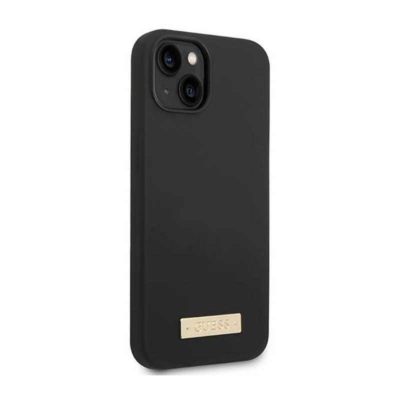 Guess Silicone Logo Plate MagSafe - Hülle für iPhone 14 Plus (Schwarz)