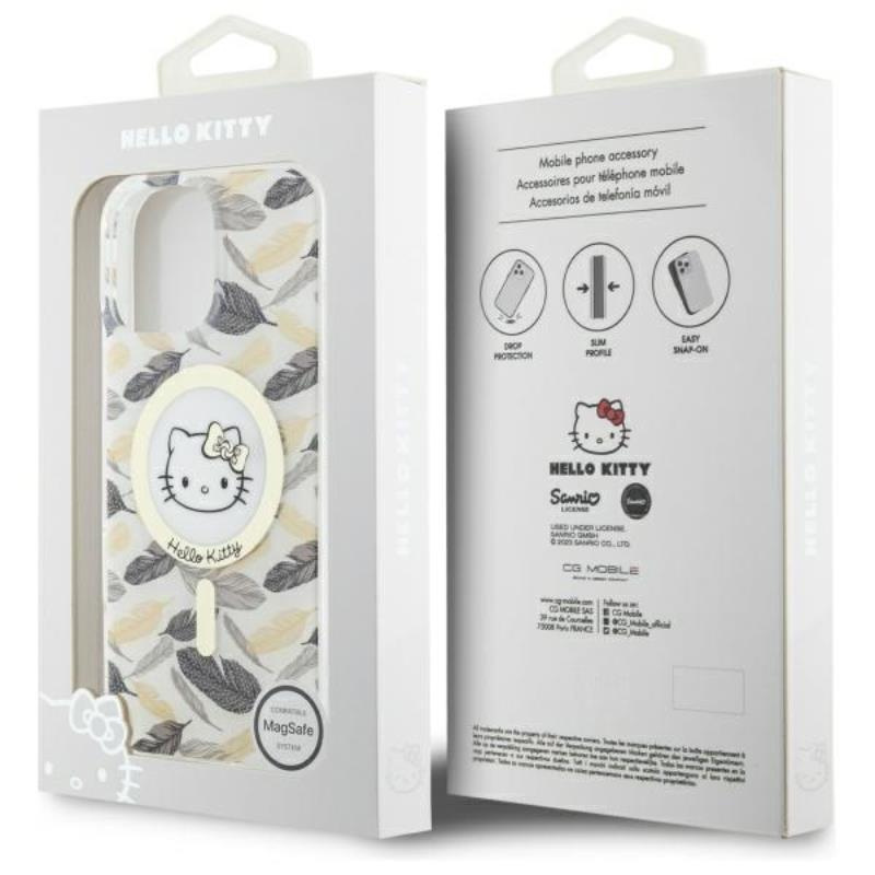 - Hello Kitty IML Golden Leaves MagSafe ist die perfekte Kombination aus Eleganz, Charme und Funktionalität. Die Hülle zeichnet sich durch ein dezentes Federmuster und einen goldenen MagSafe-Ring aus, der ihr einen einzigartigen Touch verleiht. Ergänzt wird