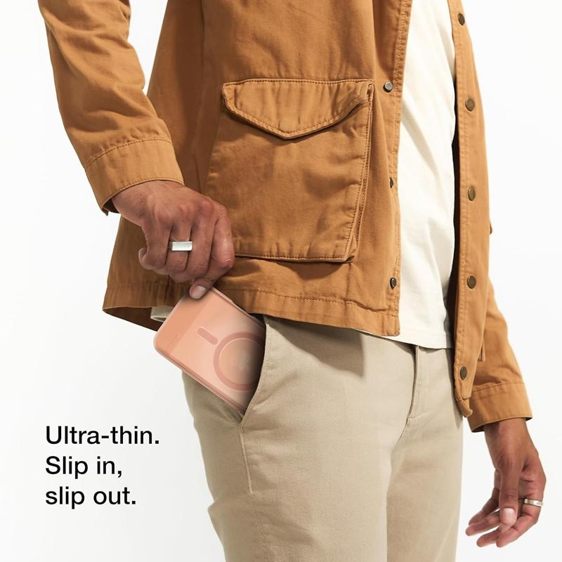 Das schlanke Gehäuse ist vollständig mit der MagSafe-Technologie kompatibel, die ein einfaches und schnelles Aufladen und Verwenden von MagSafe-Zubehör ohne Interferenzen ermöglicht.