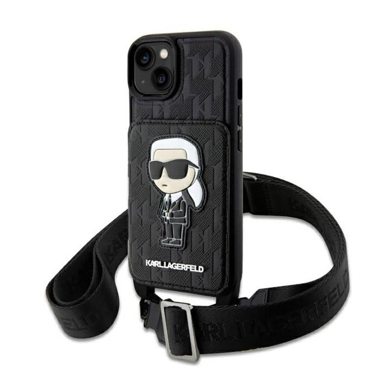 Karl Lagerfeld Crossbody NFT Saffiano Monogramm Iconic - iPhone 14 Pro Tasche (Schwarz)