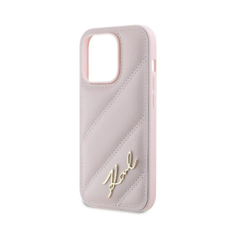 Karl Lagerfeld Diagonal Quilted Script - Hülle für iPhone 14 Pro (rosa)