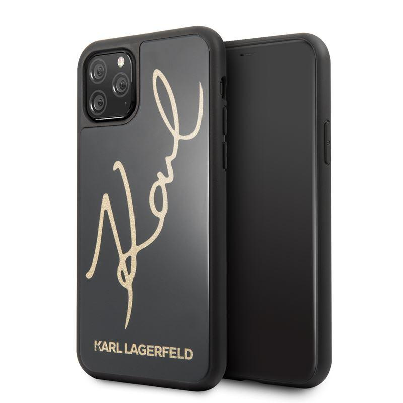 Karl Lagerfeld Double Layers Tempered Glass Glitter Signature Case - iPhone 11 Pro Case (schwarz)
