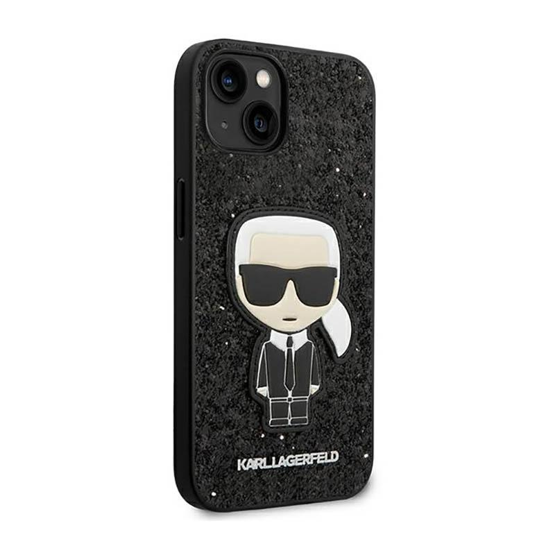 Karl Lagerfeld Glitter Flakes Ikonik - Hülle für iPhone 14 Plus (Schwarz)