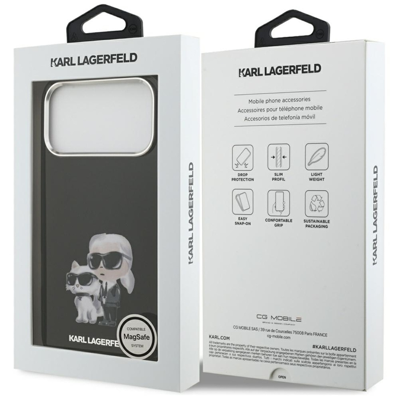 Karl Lagerfeld IML Aquarelle Karl & Choupette & Logo MagSafe - iPhone 17 Pro Hülle (Schwarz)